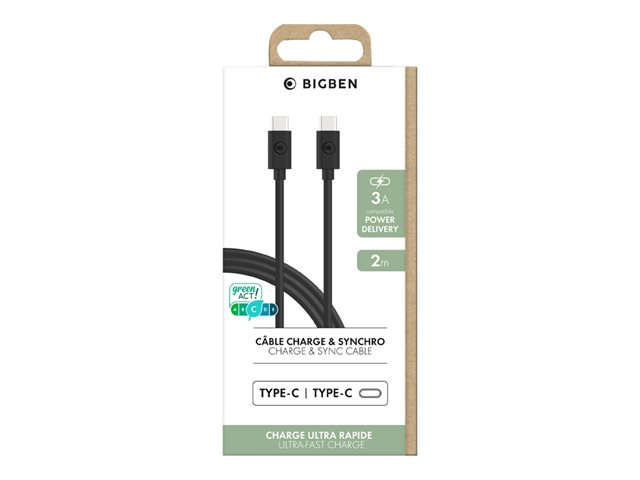 Bigben - Câble USB - 24 pin USB-C (M) pour 24 pin USB-C (M) - 3 A - 2 m - noir CBLCC2MB