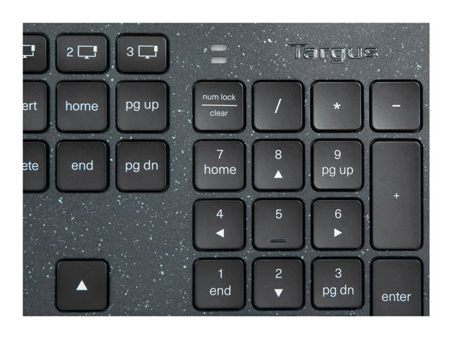 Targus EcoSmart - Clavier - collecte durable d'énergie - antimicrobienne - rétroéclairé - sans fil - Bluetooth 5.0 - AZERTY - Français - commutateur : commutateurs à clé à ciseaux - noir - emballages recyclés