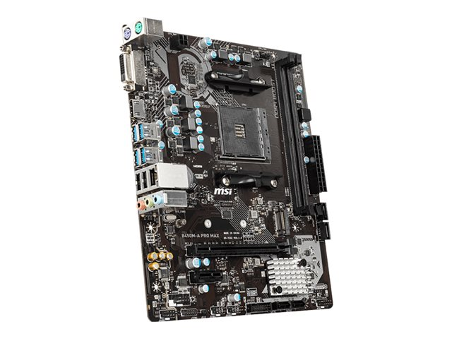 MSI B450M-A PRO MAX - Carte-mère - micro ATX - Socket AM4 - AMD B450 Chipset - USB 3.2 Gen 1 - Gigabit LAN - carte graphique embarquée (unité centrale requise) - audio HD (8 canaux) B450M-A PRO MAX