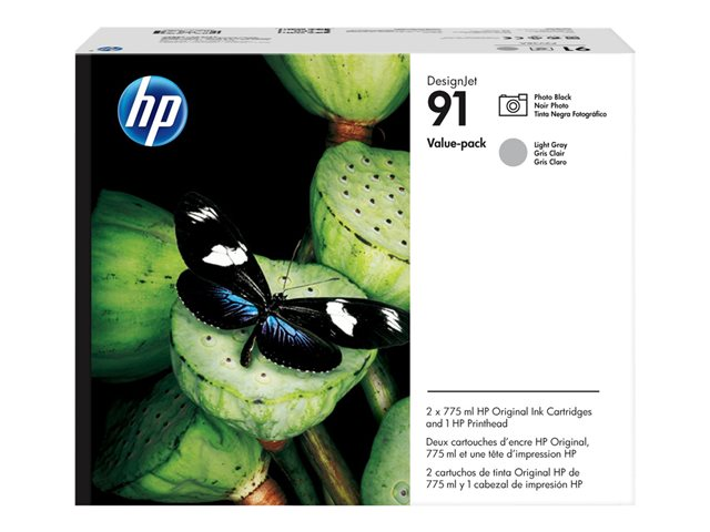 HP 91 Value Pack - Pack de 3 - 775 ml - gris clair, photo noire - originale - DesignJet - tête d'impression avec cartouche - pour DesignJet Z6100, Z6100ps