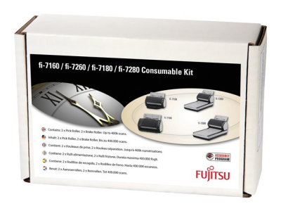 Ce kit de consommables agréé par le fabricant contient les instructions et les consommables appropriés. Le kit contient des pièces de rechange pour les éléments qui s'usent naturellement dans les conditions normales d'utilisation, comme les patins et les rouleaux. Il s'agit d'un kit de maintenance préventive indispensable qui permet d'améliorer les performances, de réduire les coûts de réparation et de conserver votre scanner en parfait état de marche.