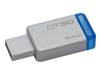 DataTraveler 50 est une clé USB légère. Le design compact et sans capuchon de la clé comprend un boîtier métallique qui complète harmonieusement tous les appareils compatibles et des touches de couleur variables selon la capacité de stockage. Les performances rapides de l'USB 3.1 Gen1 (USB 3.0) permettent de transférer de la musique, des vidéos et d'autres types de données facilement et en un clin d'œil. Rétrocompatible avec les ports USB 2.0 pour plus de facilité, la clé est également personnalisable avec votre logo et/ou vos fichiers numériques.