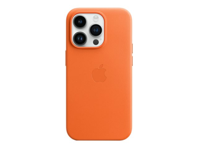 Apple - Coque de protection pour téléphone portable - avec MagSafe - cuir - orange - pour iPhone 14 Pro