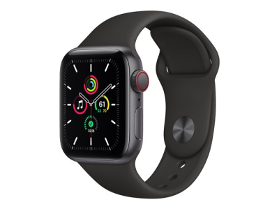 Apple Watch SE (GPS + Cellular) - 40 mm - espace gris en aluminium - montre intelligente avec bande sport - fluoroélastomère - noir - taille du bracelet : S/M/L - 32 Go - Wi-Fi, Bluetooth - 4G - 30.68 g MYEK2NF/A