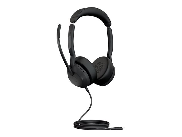 Jabra Evolve2 50 UC Stereo - Micro-casque - sur-oreille - Bluetooth - sans fil, filaire - Suppresseur de bruit actif - USB-C - noir - certifié Zoom, Certifié pour Microsoft Teams, Cisco Webex Certified, Certifié Alcatel-Lucent, Certifié Avaya, Certifié Unify, Certifié Amazon Chime