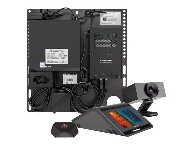 Le système UC-MX70-T constitue une solution complète de salle de vidéoconférence à utiliser avec la plateforme de communication intelligente Microsoft Teams Rooms. Il prend en charge un ou deux écrans vidéo et comprend le dispositif de conférence de table Crestron Flex, le support UC avec UC-ENGINE, la caméra d'entreprise AVer CAM520 PRO, le pod micro, les câbles et l'alimentation électrique.