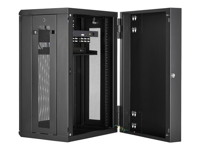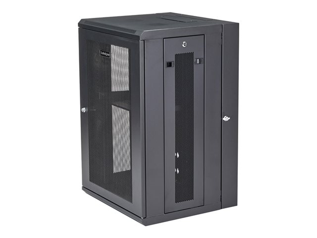 StarTech.com 18U 19" Wall Mount Network Cabinet, 16" Deep Hinged Locking IT Network Switch Depth Enclosure, Assembled Vented Computer Equipment Data Rack with Shelf & Flexible Side Panels - 18U Vented Cabinet (RK1820WALHM) - Armoire de rack - montable sur mur - noir - 18U RK1820WALHM
