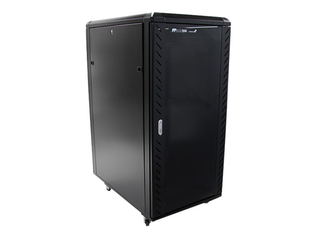 Ce rack de serveur fournit un espace de stockage de 25 unités de rack dans une armoire sécurisée et élégante, pour le stockage d'appareils 19" montables en rack, conformes à la norme EIA-310, tels que les serveurs Dell, HP et IBM ainsi que des équipements de télécommunication et audio/vidéo. Le rack constitue une solide solution de stockage qui prend en charge une capacité de charge totale de 800 kg .