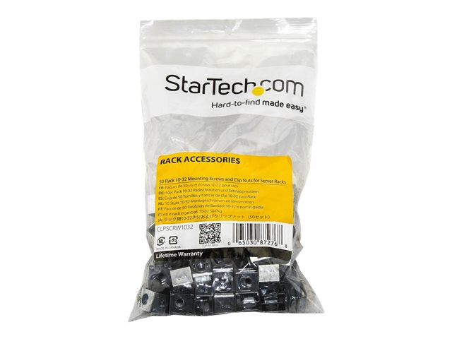 StarTech.com Vis et écrous clip 10-32 pour rack serveur - Vis de montage et écrous clip coulissants pour armoire - Paquet de 50 - Kit de vis pour rack - pour P/N: 2POSTRACK12, 2POSTRACK16, CABSCRWS1032 CLPSCRW1032