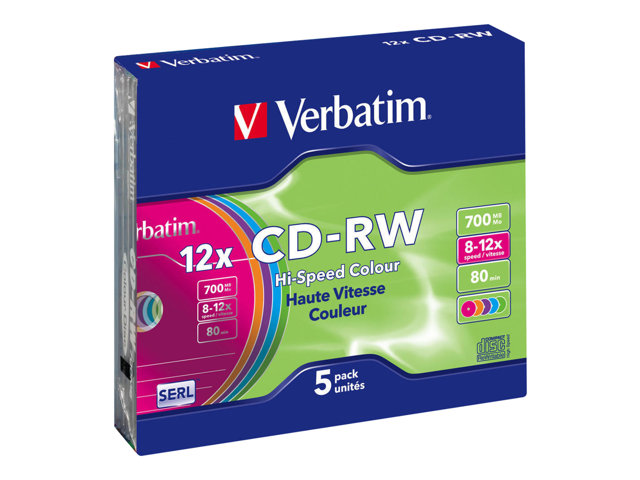 Verbatim DataLifePlus Hi-Speed - 5 x CD-RW - 700 Mo (80 min) 8x - 12x - boîtier CD étroit 43167